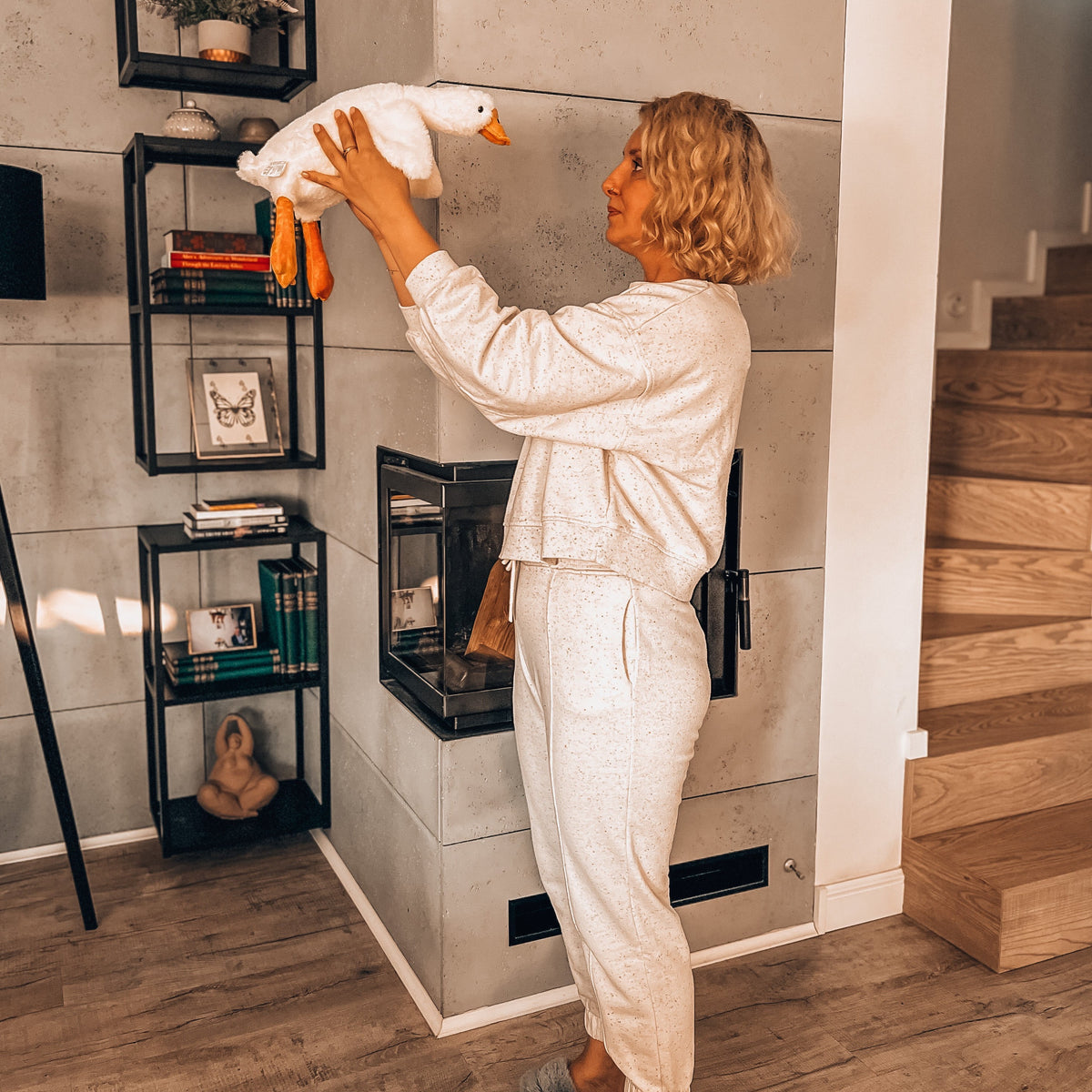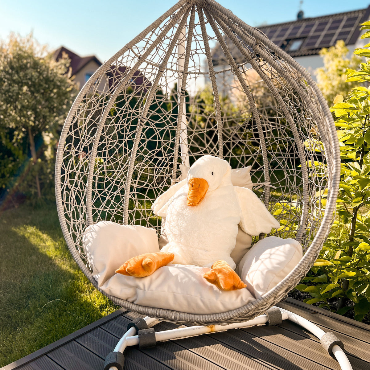 Not only is Bruce The GooseTM perfect for cuddling, but he also helps release happy hormones that promote a sense of calm and relaxation. Available in five sizes to suit any need and budget, from the Little to the Giant Bruce, he makes a perfect gift for anyone in need of extra comfort and joy, whether it's a little one, a loved one, or even a furry friend.